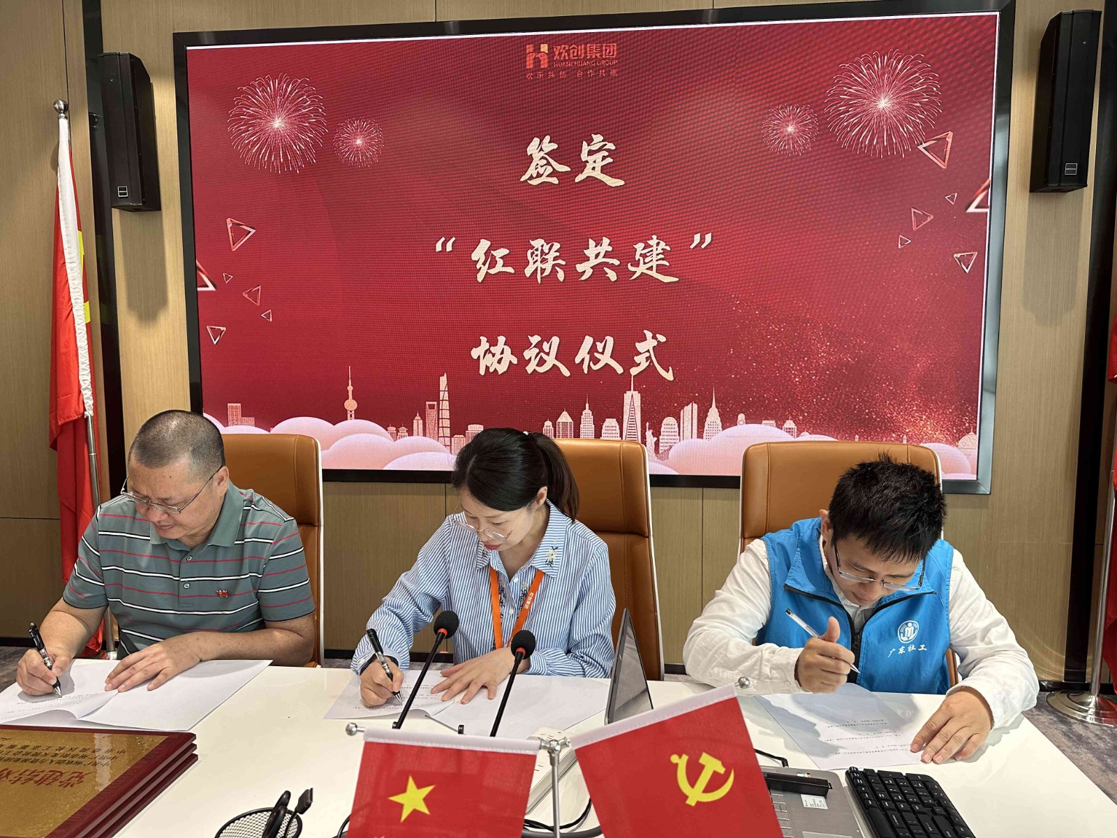欢创集团党支部与广州市阳光天使党支部、番禺区社工志愿服务党支部开展红联共建活动